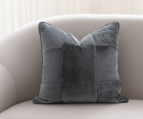 Indulge in the tactile luxury and inviting comfort of the Cozy Cushion. This elegant decorative pillow features a sophisticated patchwork design, crafted from various panels of plush fabric in a harmonious range of grey tones. Each section boasts a distinct texture – from soft, smooth velvet-like areas to sections with a subtle embossed or crushed effect, and perhaps even a subtle ribbed pattern. This interplay of textures creates a dynamic visual interest and an incredibly inviting feel, making it perfect for snuggling. Finished with subtle piping that outlines its form, the Cozy Cushion effortlessly blends comfort with refined style. Ideal for contemporary, modern, or even transitional interiors, it brings an understated glamour and an irresistible softness to your sofa, armchair, or bed.