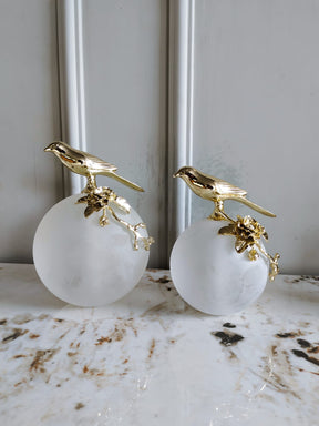 Birds Stand on Frosted Crystal Ball