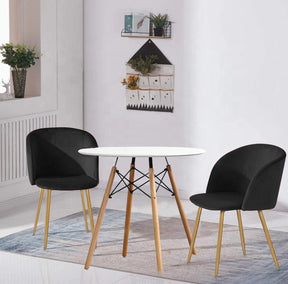 Experience the perfect blend of style and functionality with our Mitzi Gold Black Dining Set. This set includes a sleek white table top and black colour chairs, creating a modern and sophisticated look for your dining area.